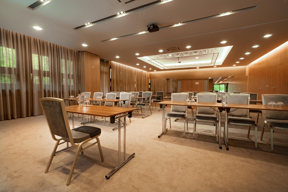 Otvorením deliacej steny so susediacou časťou reštaurácie sa priestor kongresovej miestnosti zväčší o ďalších 50m2, čím sa stáva ideálnym pre rôzne školenia, kongresy, svadby či iné slávnostné a spoločenské akcie.
